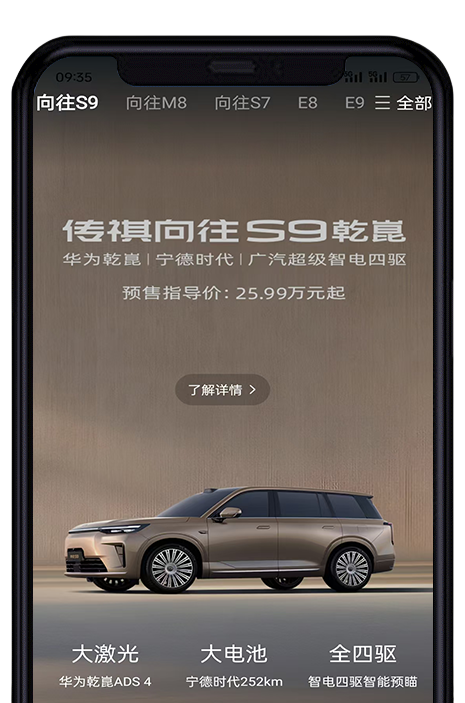 請下載并打開廣汽傳祺APP進行升級訂單。操作路徑:打開廣汽傳祺APP->我的 ->我的訂單->新車訂單 ->查看詳情 ->升級訂單。